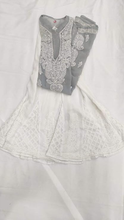 Buy Ada Lucknowi Chikankari Hand Embroidery Faux Georgette Kurta With Slip For Women A130748 Grey At Amazon In - All 10 colors kurti sets 3 layered 3 pc gota pati 3 pc latest chikan 3 pcs gotta patti 3cs anarkali anarkali & pant angrakha aqua blue aqua green baby pink banarasi kurtis bandhani dupatta bandhani silk dupatta beautiful hand work dupatta.