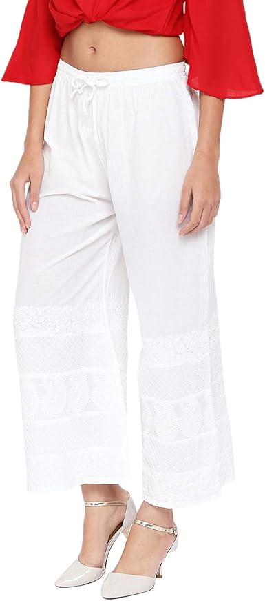 Indiankala4u Lucknow Chikankari Hand Embroidered Palazzo Pants Wide Leg Salwar For Women At Amazon Women S Clothing Store - 4.0 out of 5 stars 15.