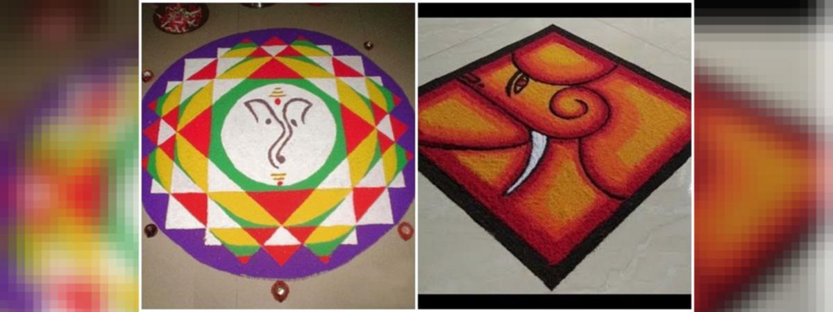 Easy Fancy Ganpati Rangoli - Its very easy to buy ganpati rangoli stitched vol 10 catalogue online from gomodish.in. Easy Fancy Ganpati Rangoli : Ganesha rangoli with rice & betel nut /ganpati rangoli/ganesh muggulu/ganesha kolamlatest rangoli design for ganesha,gauri puja,navratri,diwali and laxmi pu.