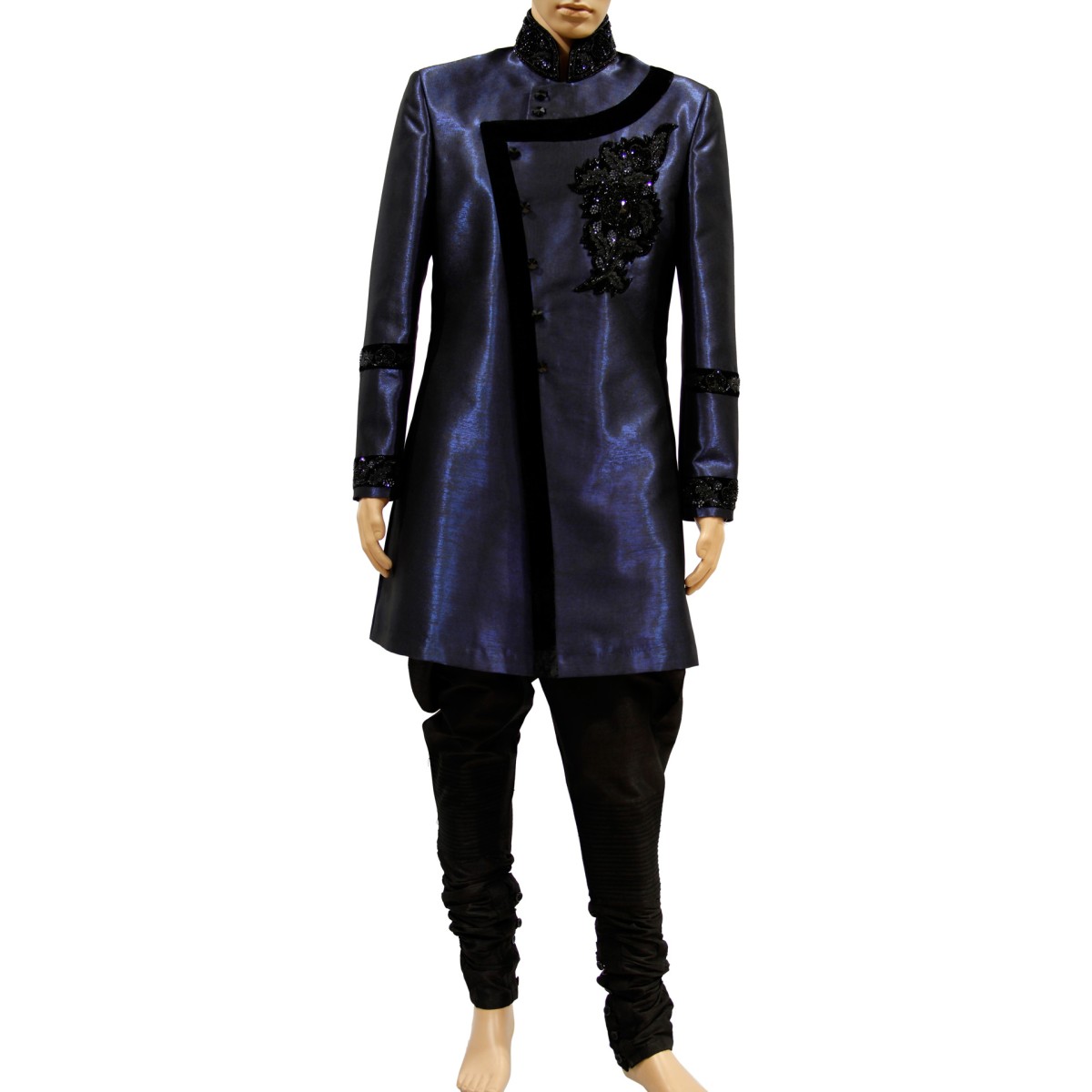 Indo Western Sherwani Latest Design - The dark workmanship silk kurta includes a layered look in a sharp sporadic example on the burden part. Indo Western Sherwani Latest Design / The upper layer has foliage designs on the.