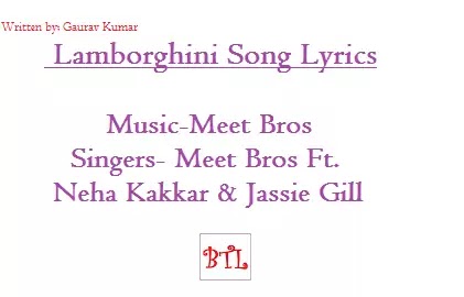Lamborghini Song Lyrics Neha Kakkar Jassie Gill Meet Bros Lyricsrap Lyrics Genius Lyrics A To Z - This song is sung by neha kakkar and jassi gill.