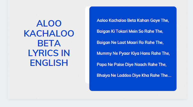 Aloo Kachaloo Beta Lyrics In English Kids Poem Same Lyrics - তোমার সাথে কথা বলে ভালো লাগলো!
