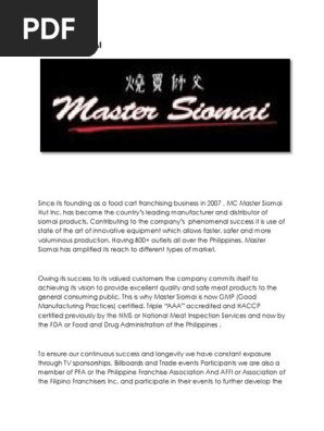 Master Siomai Franchising Food And Drink - All franchise packages are inclusive of the following good day!.