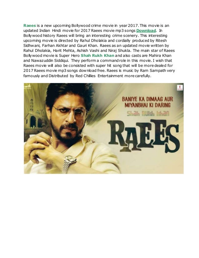 Raees Movie Songs Downloadming - Bollywood hindi movie raees (2017) mp3 songs download. Raees Movie Songs Downloadming - Raees is directed by rahul dholakia.