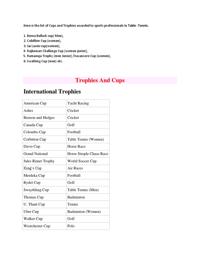 Rangaswami Cup / Which of the following is the trophy /cups associated with the game of hockey ? Rangaswami Cup : Cups & trophies associated with hockey.